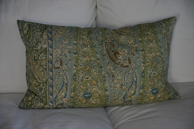 Here's a small update to our family room that I wanted to share with you. The $8 left on my Pottery Card gift card from Christmas was literally (not really) burning a hole in my wallet, I just HAD to spend it, so I picked up this new pillow to compliment the other Pottery Barn pillows I picked up recently. So now I have a nice little trio: